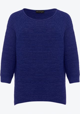 Courtney Blue is a textured jumper in a soft, lightweight fabric with a relaxed neckline and contrast stitch detailing.