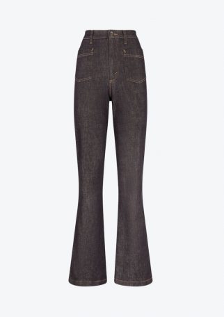 Be fashionable in these flared jeans with tobacco-colored stitching, wide-leg, and high waists.